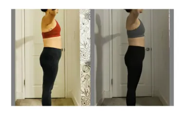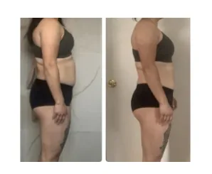 "I just wanted to share some progress with you, these 1 month and 1-week progress photos with you! Day 1 photos I was 161 lbs. and today's photo is at 154 lbs.! The most amazing feeling was my period last cycle. Usually, I have severe cramps and body aches to the point that I sometimes have to call off of work. This time around my cycle cramps and aches were very low and tolerable."